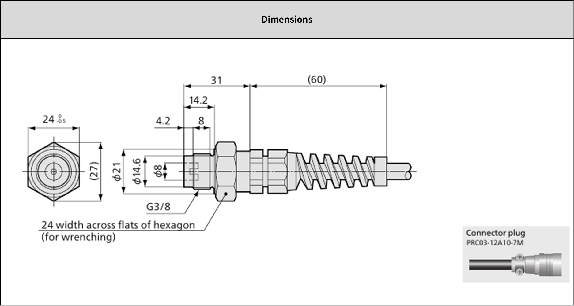 0.3mm², 4-core shielded chloroprene cable, 3m, outer diameter 7.6mm, connector plug at tip PRC03-12A10-7M