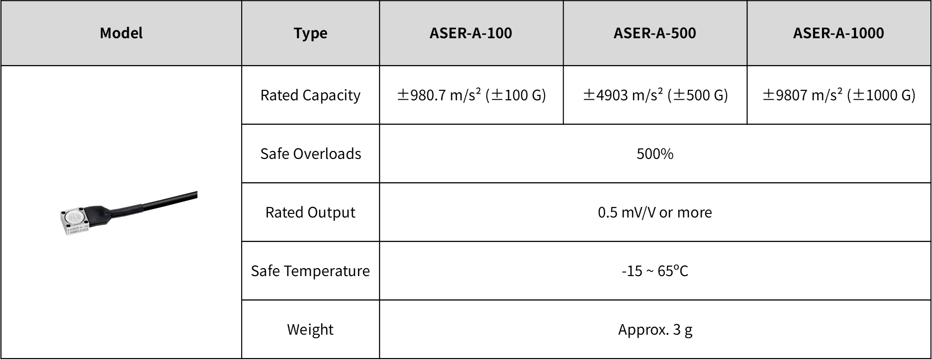 ±980.7 m/s² (±100 G) ~ ±9807 m/s² (±1000 G)