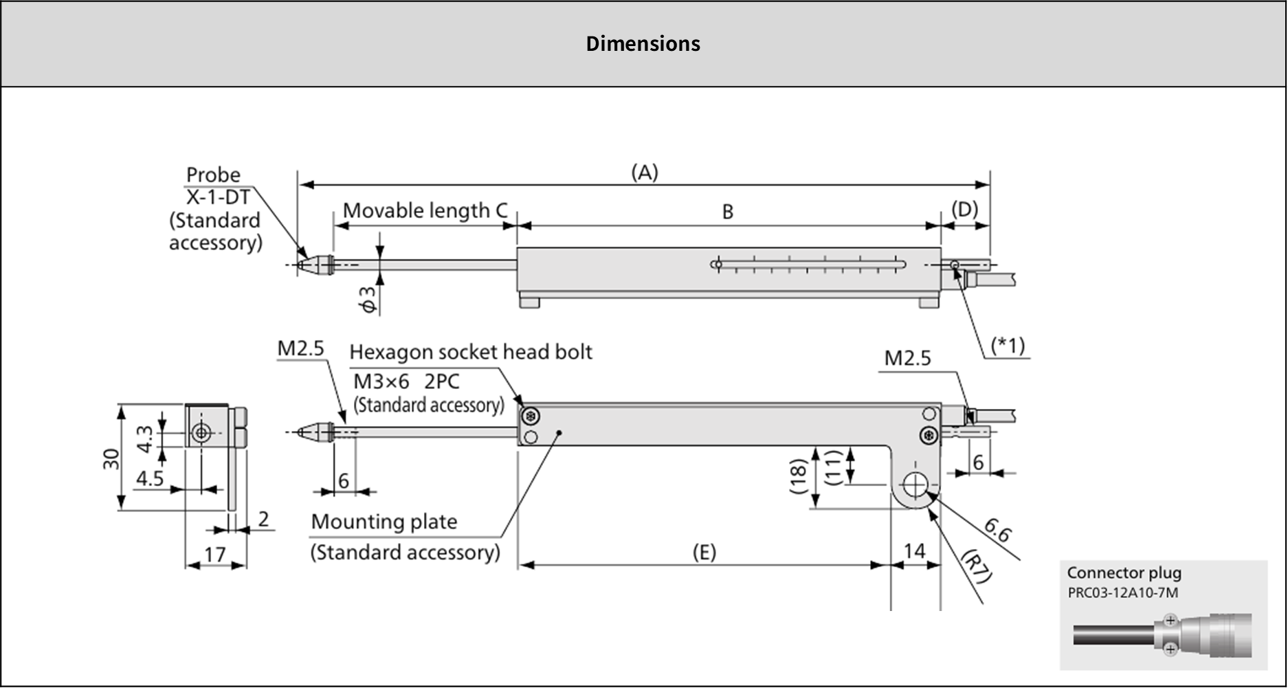 4-conductor (0.08 mm2) vinyl shielded cable, 3.2 mm diameter by 3 m long, terminated with a connector plug PRC03-12A10-7M