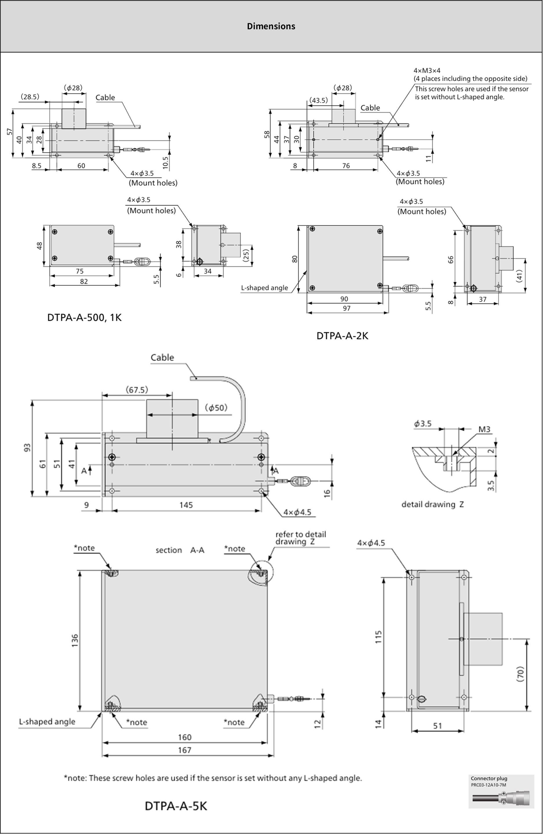 4-conductor (0.08 mm2) chloroprene shielded cable, 4 mm diameter by 3 m long, terminated with a connector plug PRC03-12A10-7M