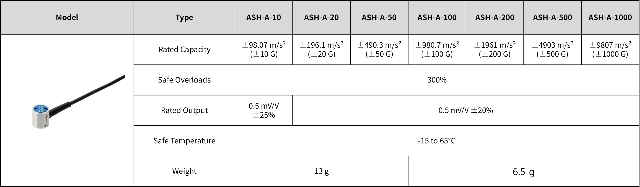 ±98.07 m/s² (±10 G) ~ ±9807 m/s² (±1000 G)