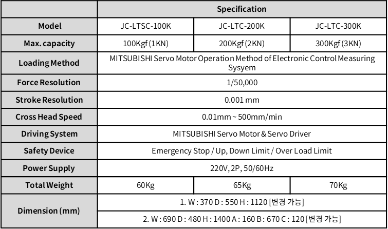 [Electronic Universal Testing Machine] 고무, 금속, 플라스틱, 와이어, 종이, 필름, 섬유 등 각종 재료의 물성 시험을 하기위한 재료물성 시험기로서 다양한 시험결과를 얻을 수 있습니다. 서보모터 제어로 정밀한 제어 및 컴펙트한 디자인으로 구성된 심플한 저하중 만능재료시험기 입니다.