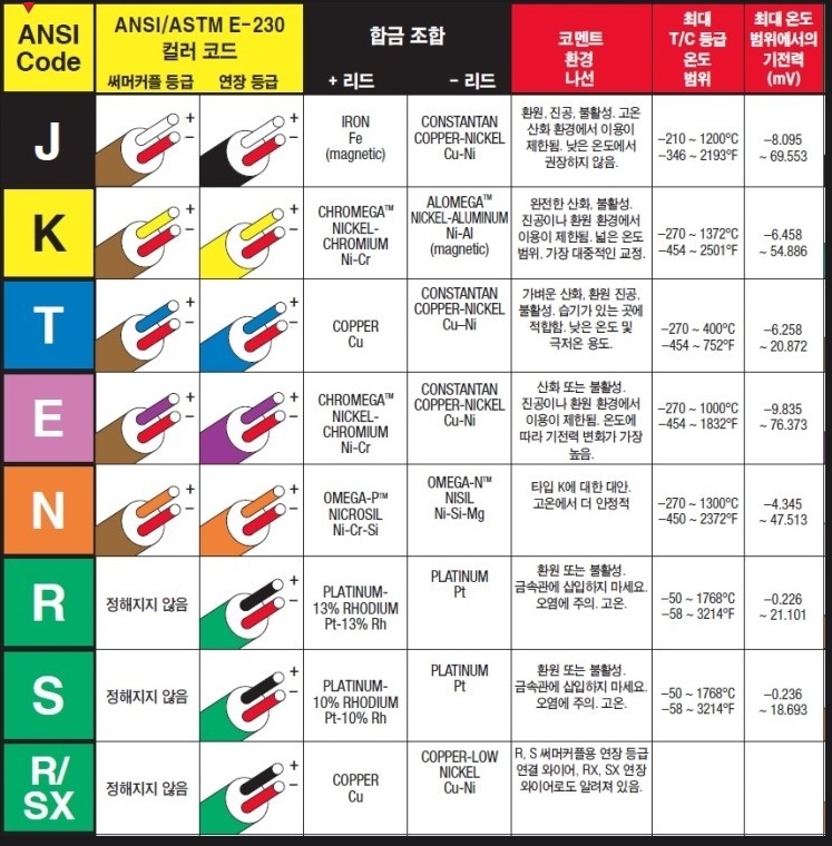써모커플 온도센서는 통상 열전대 센서라고 불리며 써모커플은 2가지 서로 다른 금속성 물질로 구성되며 해당 금속의 종류에 따라 타입이 달라지게 됩니다.